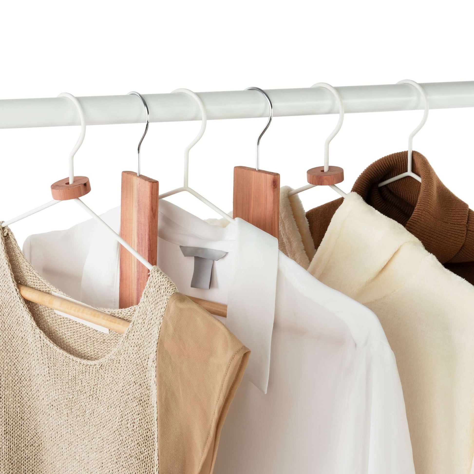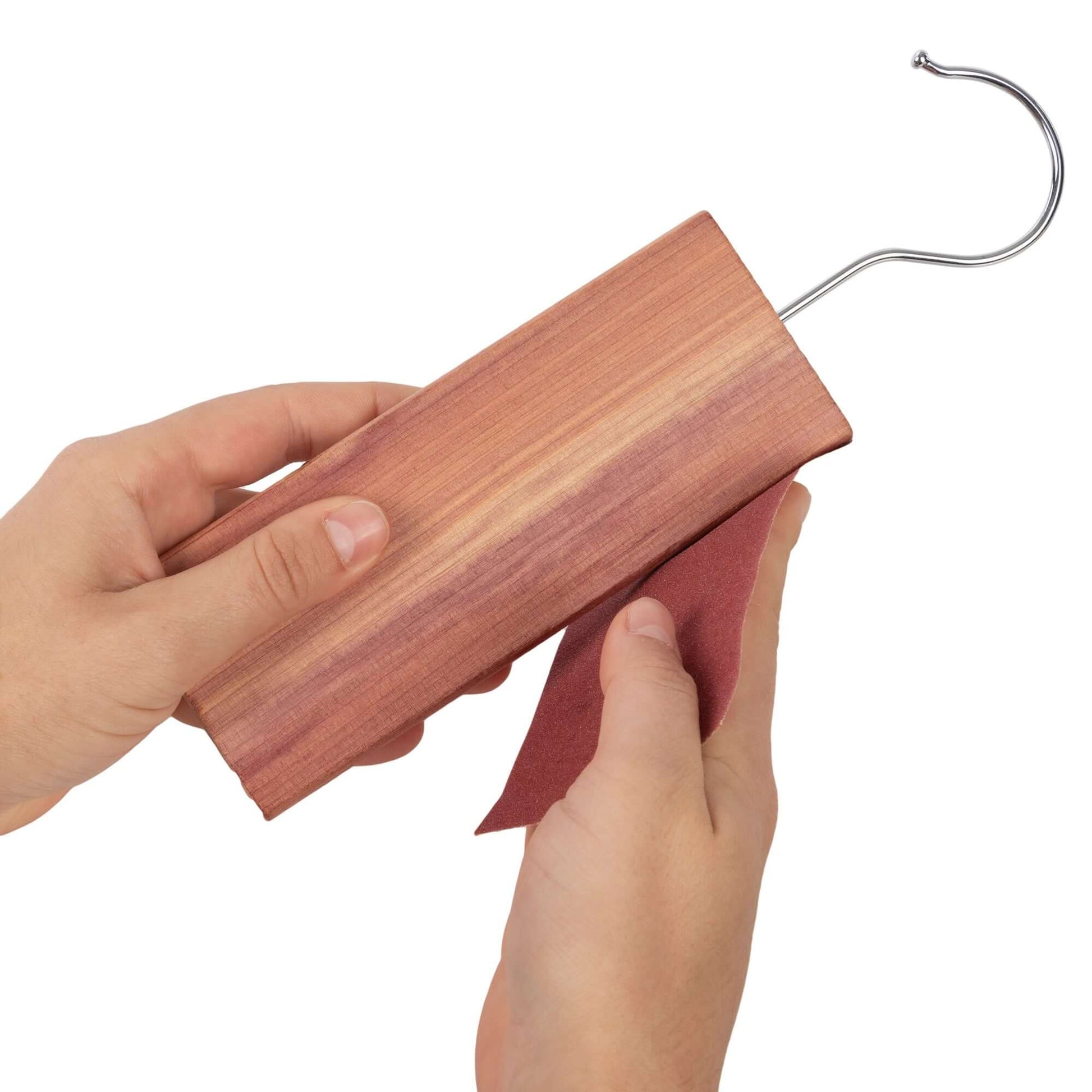 Rien de tel que le cèdre pour protéger les vêtements de façon naturelle ! Grâce à ce coffret complet de 34 pièces, vous pourrez équiper les tiroirs et penderies de la maison. Ce bois éloigne les mites et donne au linge un agréable parfum boisé. Pour cela, il vous suffit de glisser ces formes en cèdre entre vos piles de pulls et dans les tiroirs de votre dressing. Les plaques avec crochet s'accrochent entre les vêtements sur la barre de penderie, les anneaux en cèdre peuvent s'enfiler sur les cintres. Pensez également à utiliser le cèdre pour parfumer vos housses et sacs de rangement sous vide. Et si, au fil du temps, le parfum s'estompe, vous pourrez frotter légèrement le cèdre avec les feuilles de papier de verre jointes à l'ensemble : cela ravivera l'odeur et le cèdre retrouvera toute son efficacité.