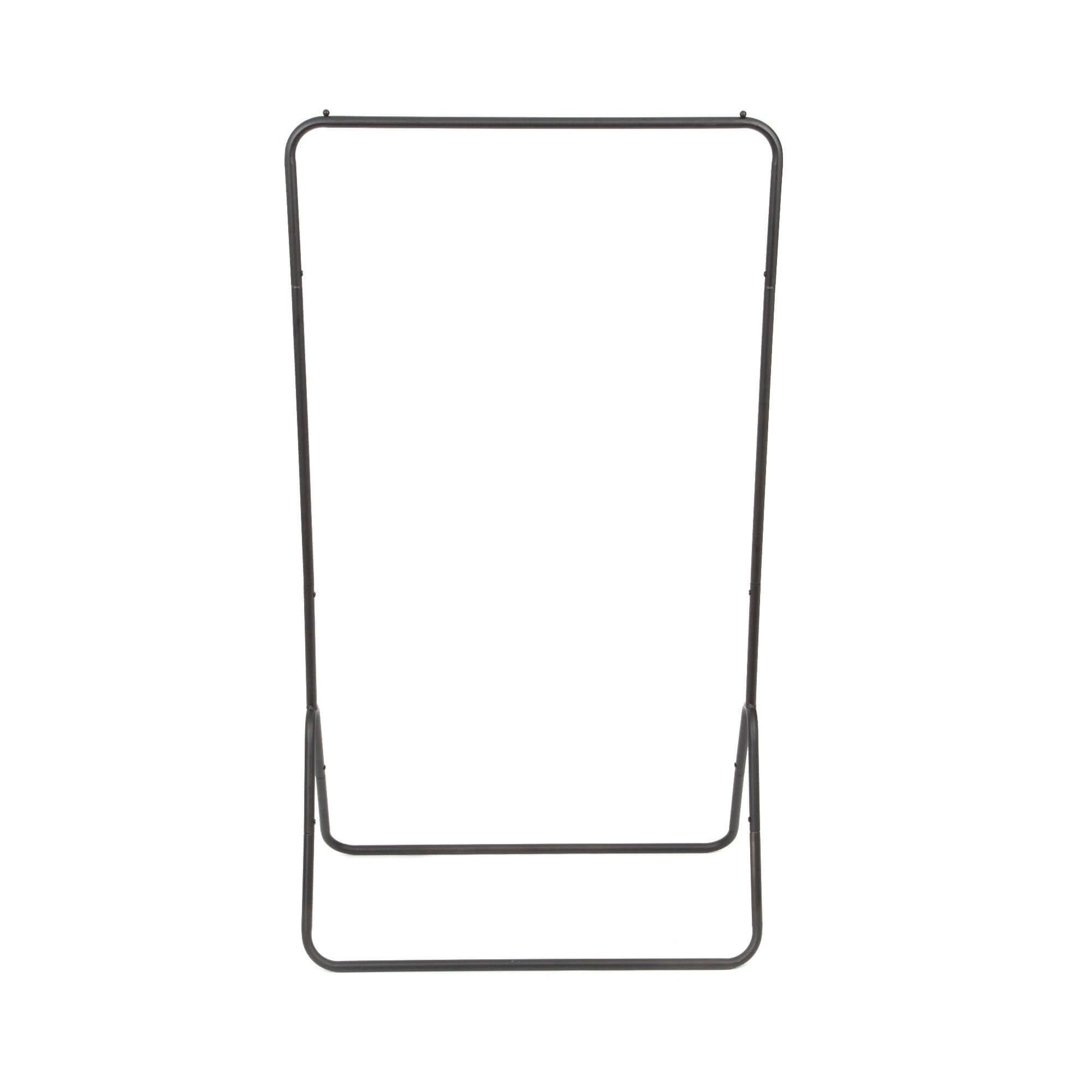 Le portant Fyn est en tubes métalliques finition époxy noir mat. Des ergots sont prévus de part et d’autre pour éviter que les cintres ne glissent. Dimensions 80 X 44,5 X H.145,5 cm. Il est livré à plat pour faciliter le transport et se monte facilement avec la clef de montage fournie.