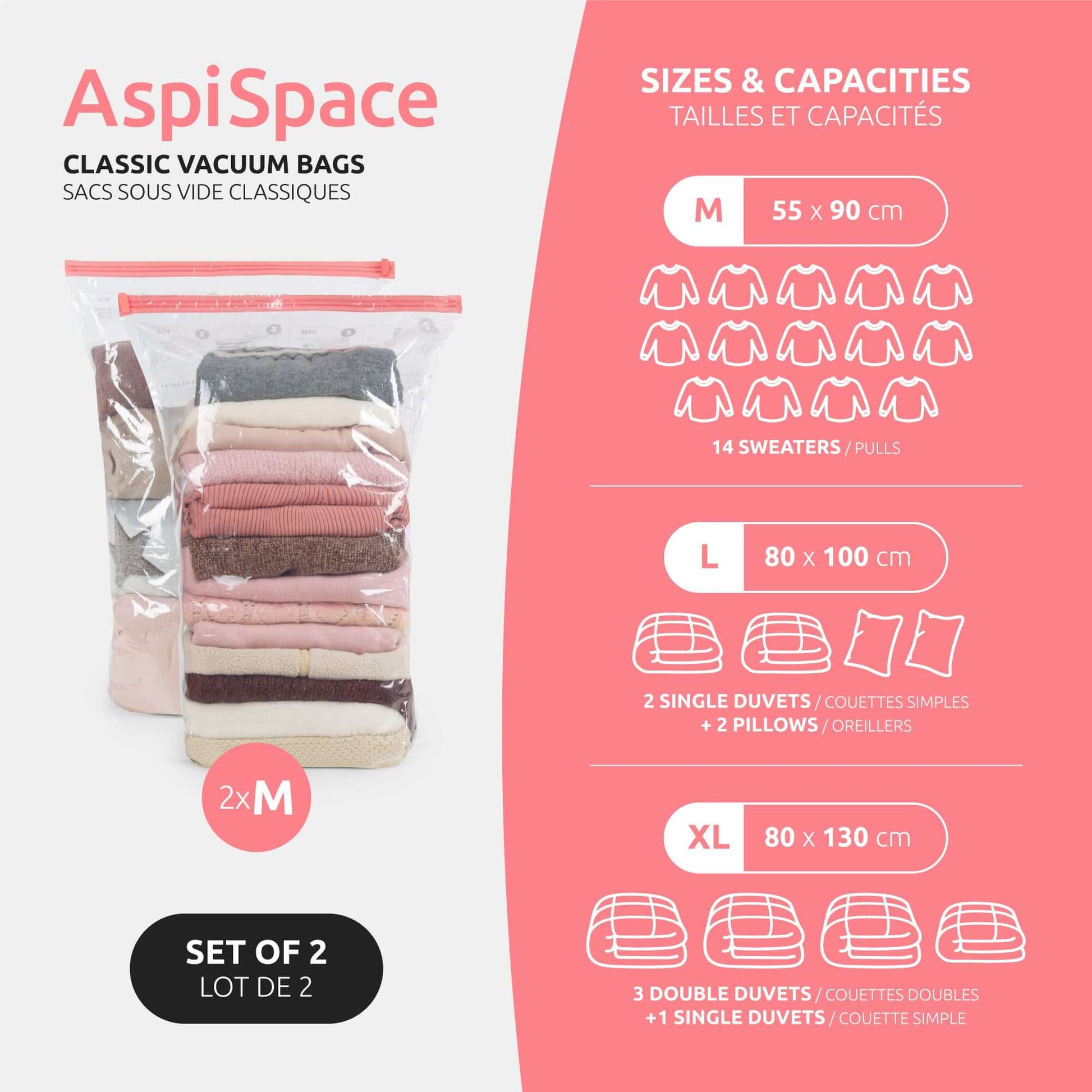 Compactor Pack de 2 bolsas de almacenamiento al vacío transparentes Aspispace M