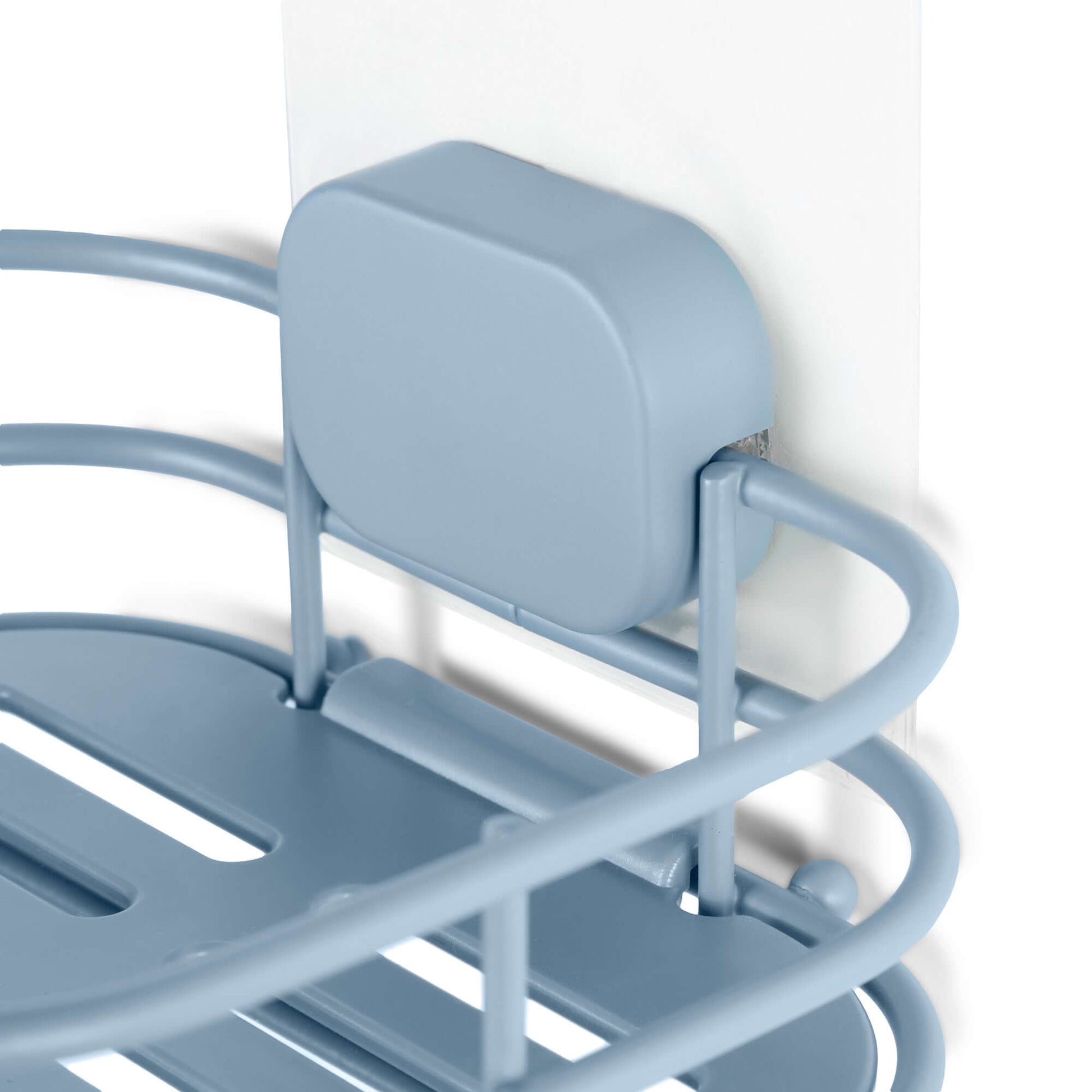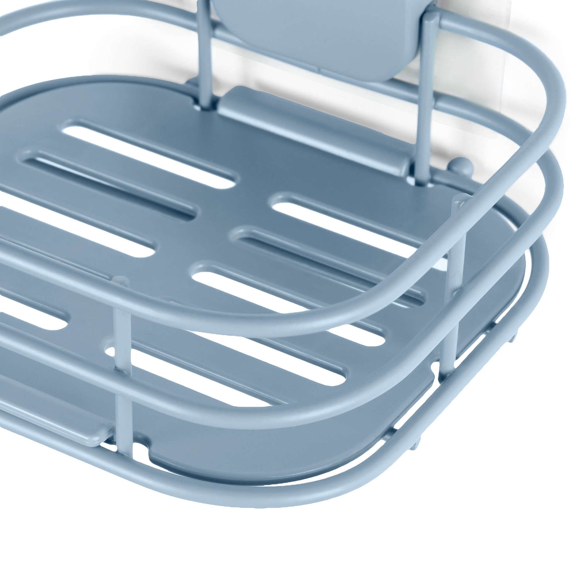 Fabricada en metal con acabado epoxi de color gris azulado, esta jabonera le dará un bonito toque decorativo a tu baño o cocina sin abarrotar el borde del fregadero o la encimera. Se fija a la pared en un solo gesto sin tornillos ni taladros.
