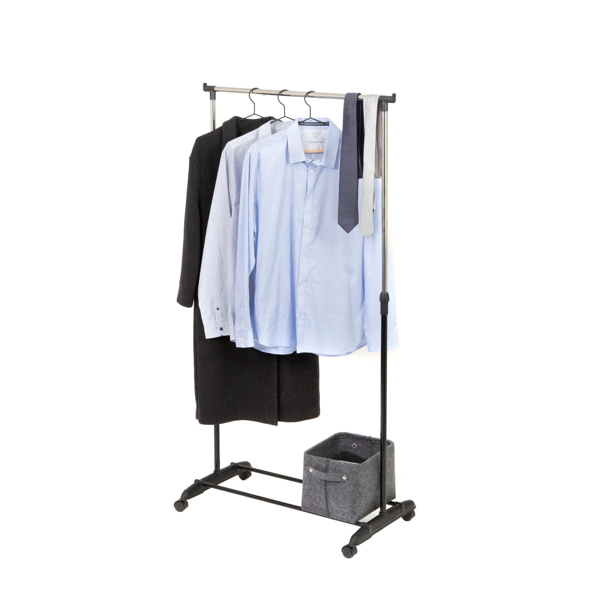 Con su bajo precio, este perchero con ruedas te permite organizar los dormitorios o el recibidor y guardar la ropa sin gastar demasiado. Esta es la solución adecuada para quienes carecen de espacio en sus armarios o no tienen ningún mueble. También se puede utilizar como armario para secar camisas y colgarlas una vez planchadas. También es una forma económica de equipar un estudio en el que no puedes hacer ningún trabajo de montaje, ¡especialmente si estás acostumbrado a mudarte con frecuencia! Un bonito detalle: su altura regulable se adapta al tipo de ropa que quieras colgar. Apreciamos la maniobrabilidad de sus ruedas que facilitan mover el bastidor de una habitación a otra. Los topes de plástico evitan que las perchas se deslicen y permiten colgar bolsos o accesorios. En la base, dos barras permiten colocar una caja o una cesta para completar el almacenaje.
