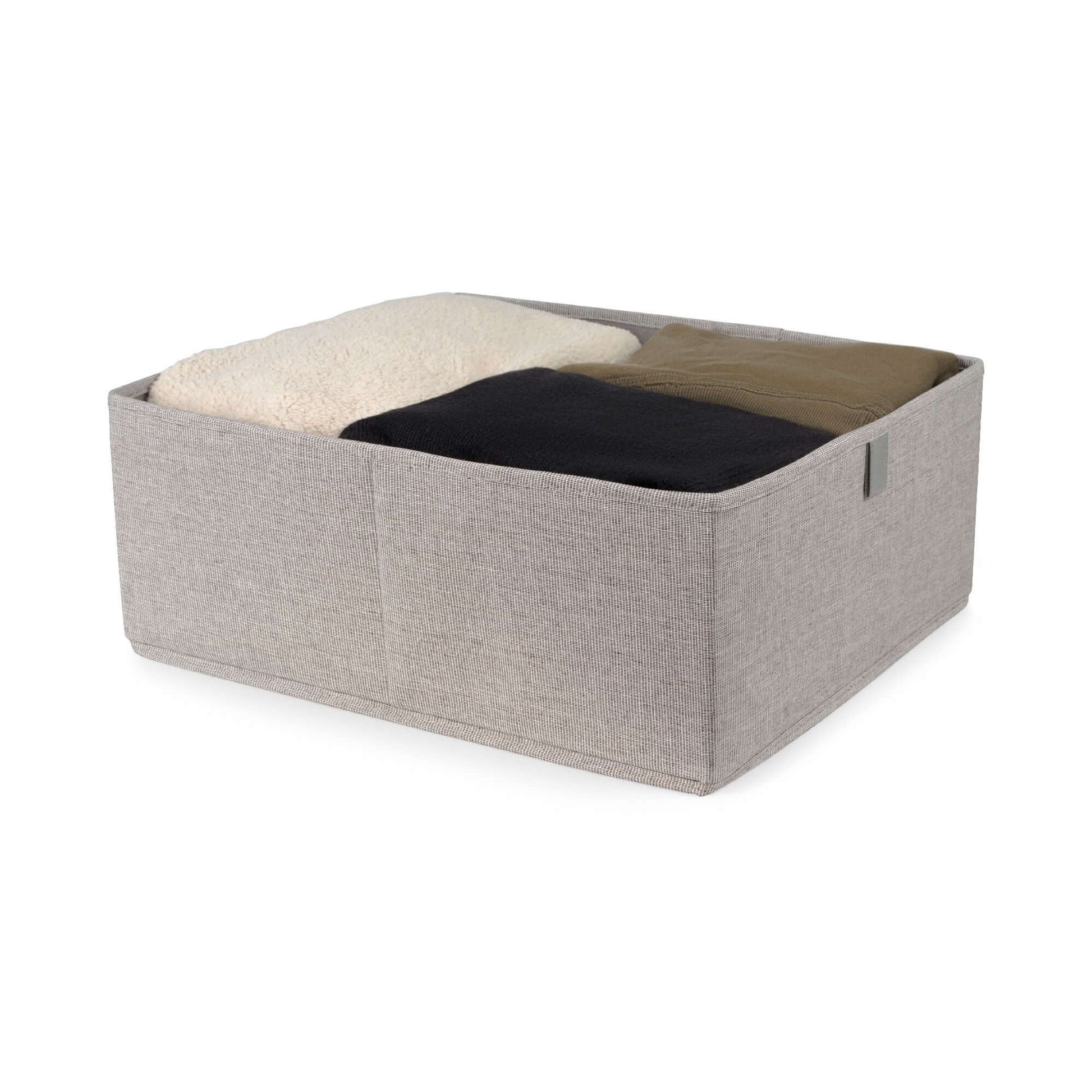 Organisez votre maison avec élégance grâce à la boîte de rangement taille L Oxford de Compactor. Cette boîte de rangement est en carton recouvert de tissu Oxford chiné gris à l’extérieur, uni gris à l’intérieur. Elle existe en plusieurs formats, tous parfaitement coordonnés à notre gamme de rangement Oxford. Pour faciliter le transport, elle est livrée à plat et se déplie d’un geste pour le montage. Dimensions : 42 X 36 X H.16,5 cm.