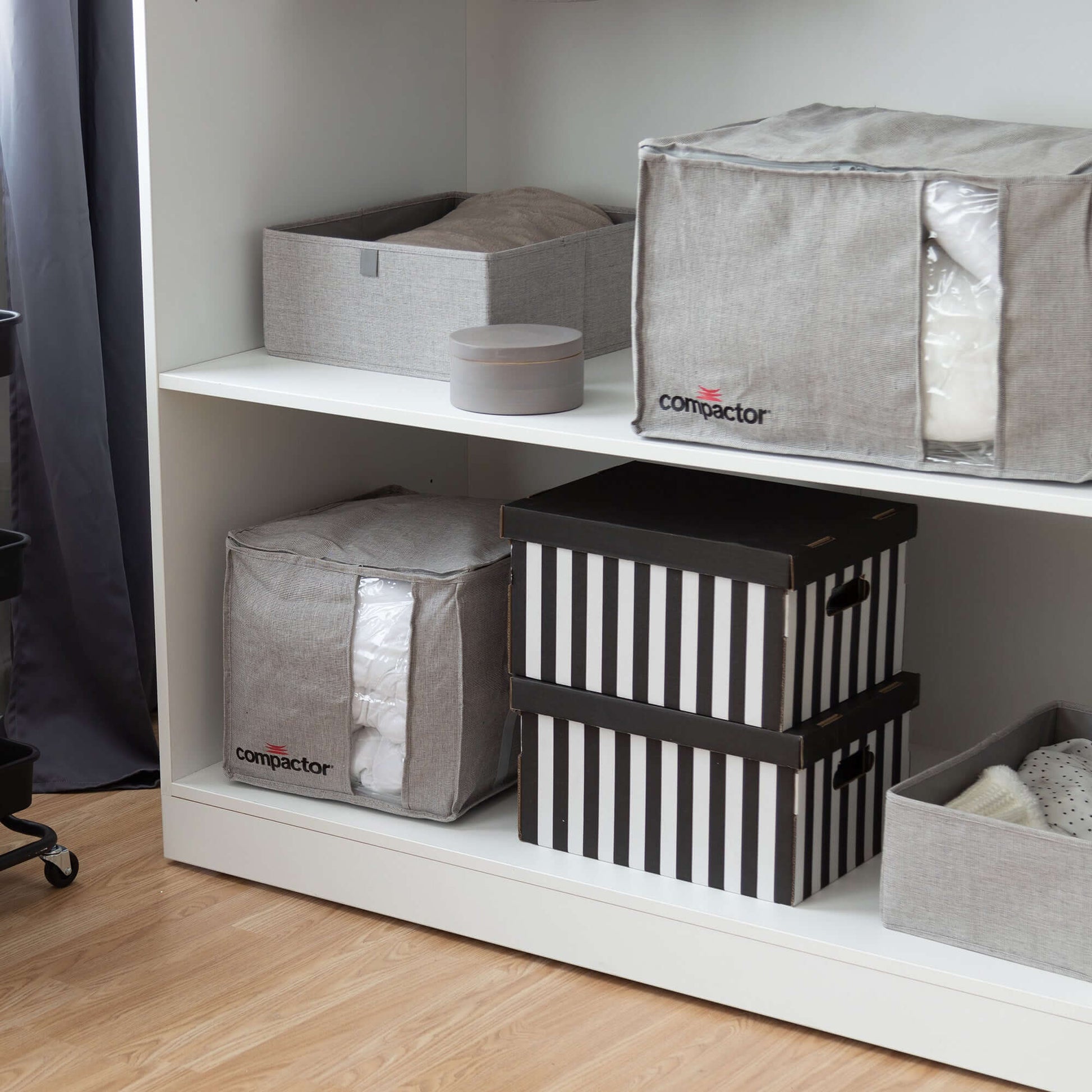 Organisez votre maison avec élégance grâce à la boîte de rangement taille M Oxford de Compactor. Cette boîte de rangement est en carton recouvert de tissu Oxford chiné gris à l’extérieur, uni gris à l’intérieur. Elle existe en plusieurs formats, tous parfaitement coordonnés à notre gamme de rangement Oxford. Pour faciliter le transport, elle est livrée à plat et se déplie d’un geste pour le montage. Dimensions : 42 X 26 X H.16,5 cm.