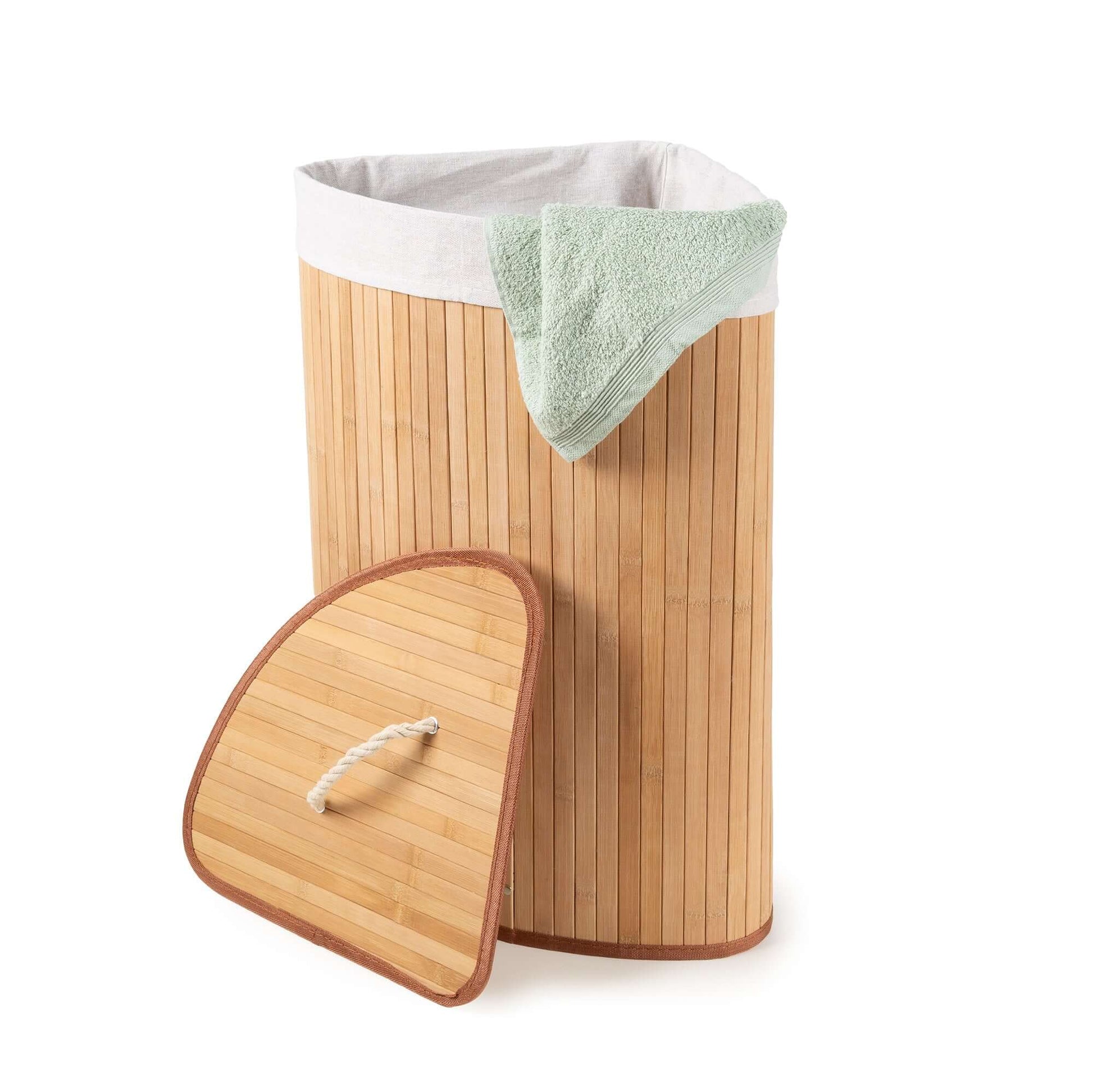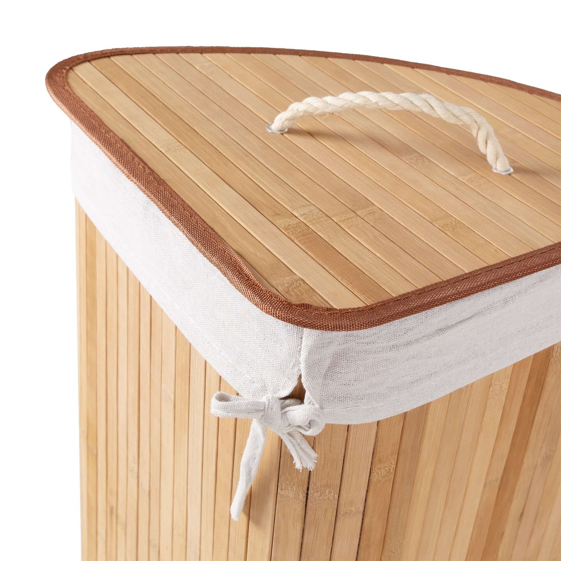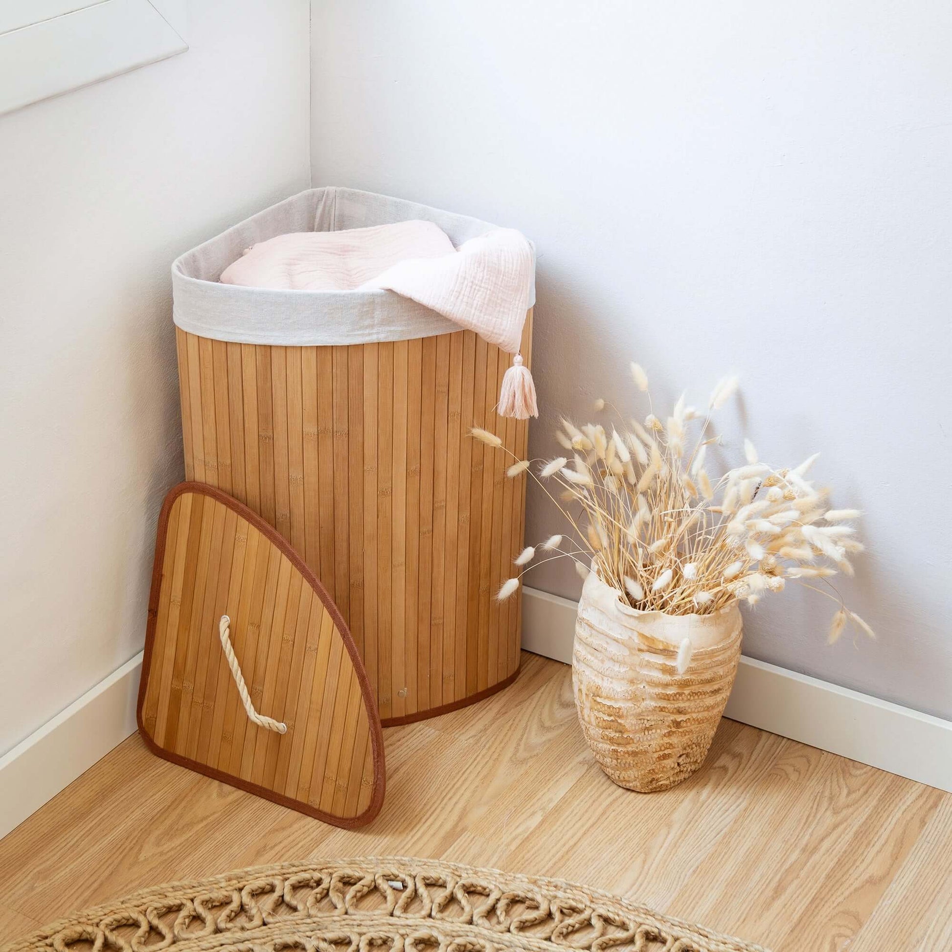 Sa structure en bambou clair à l’aspect mat lui confère un style naturel et chaleureux. Le couvercle amovible permet de dissimuler le linge en toute discrétion, tandis que la doublure intérieure en tissu écru protège les vêtements et évite les accrochages.