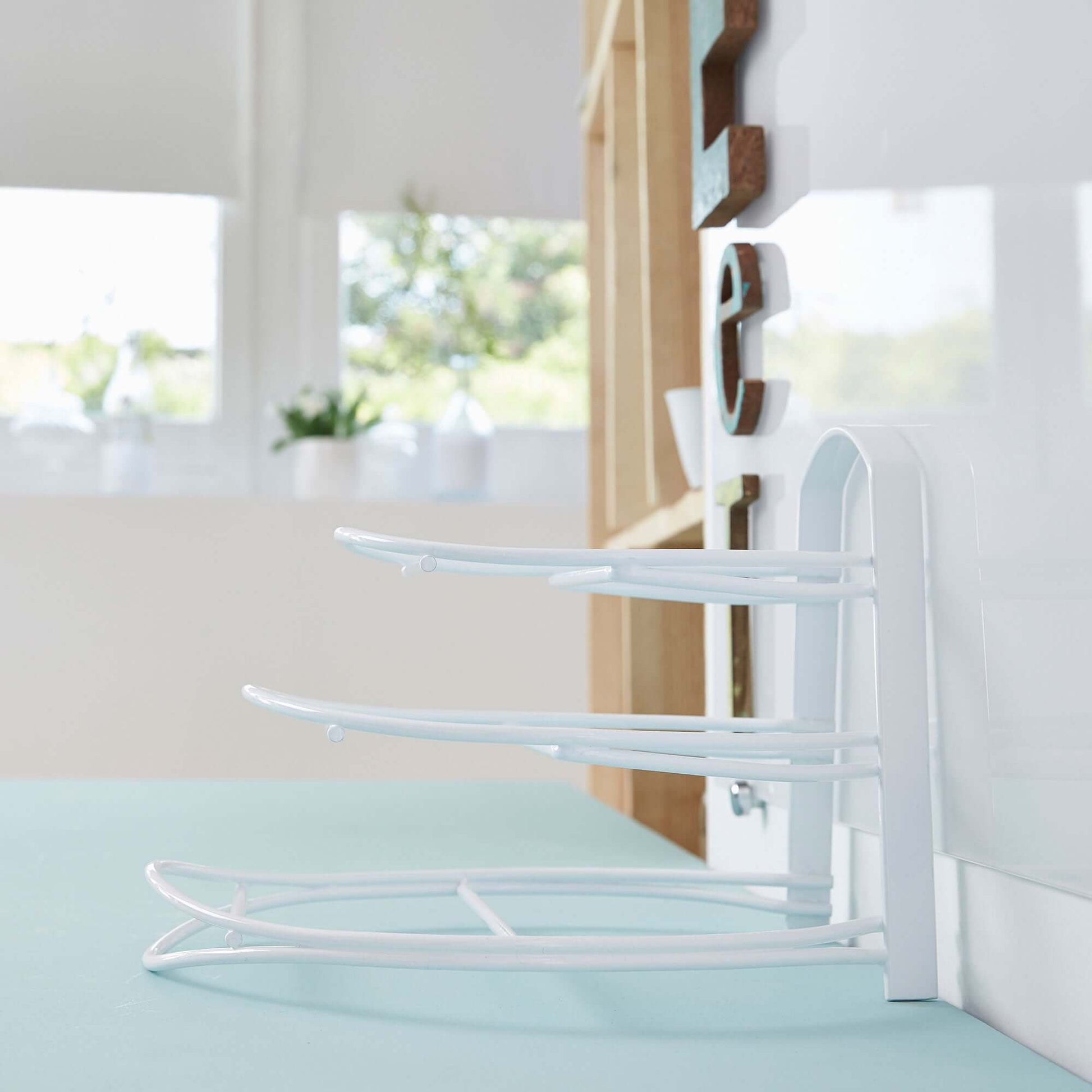 Organisez vos placards et tiroirs de cuisine plus facilement grâce à cette étagère arrondie. Elle vous permettra de superposer la vaisselle ou vos poêles sans avoir à tout sortir pour les attraper. Elle évitera en outre de ranger les poêles les unes au dessus des autres sans les griffer. C'est aussi un bon moyen d'éviter la place perdue dans les placards et d'exploiter tout l'espace disponible entre deux étagères de cuisine.