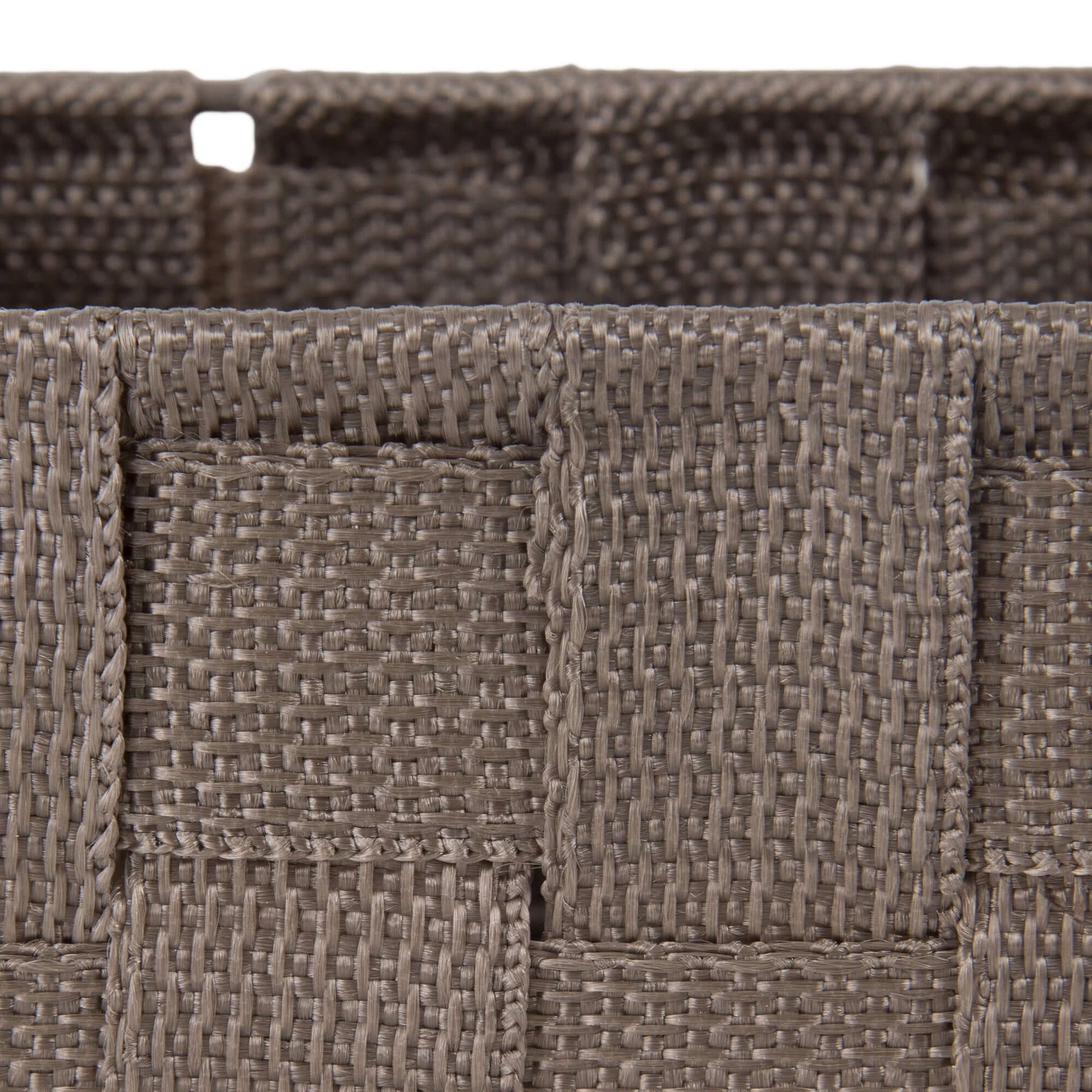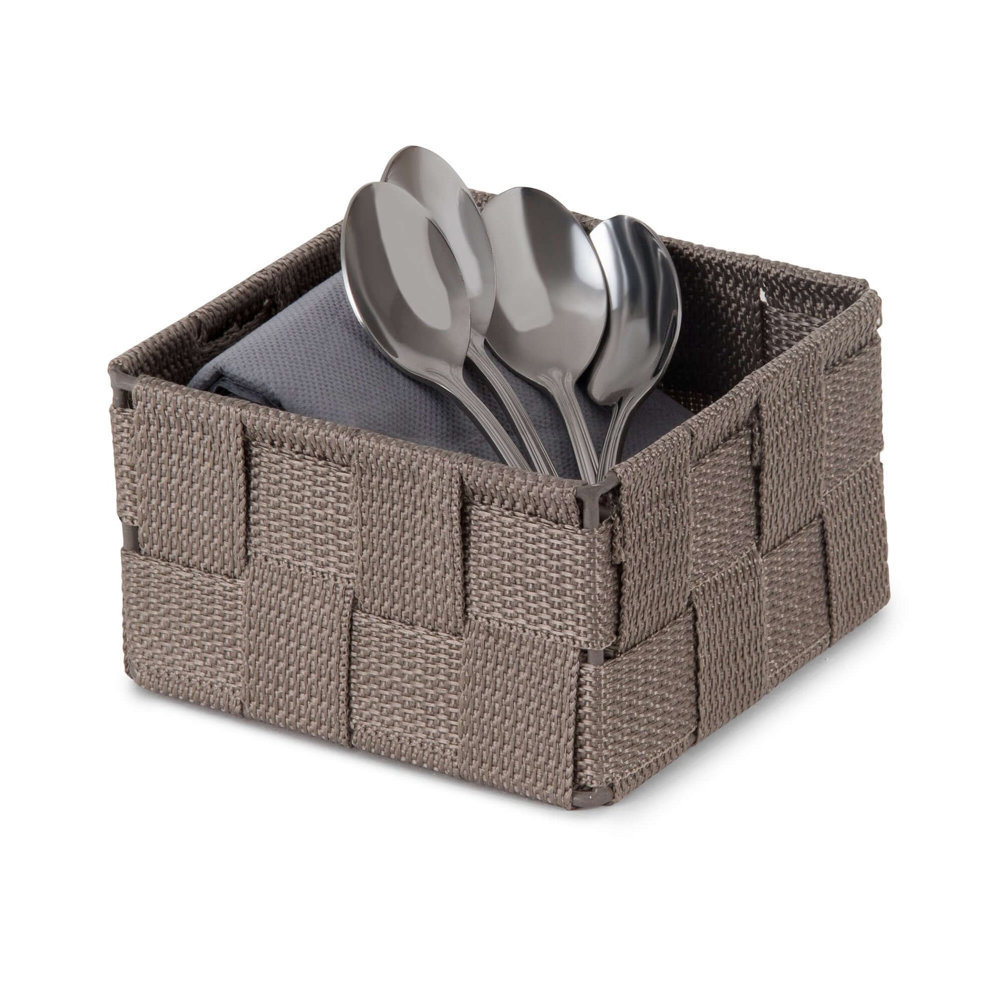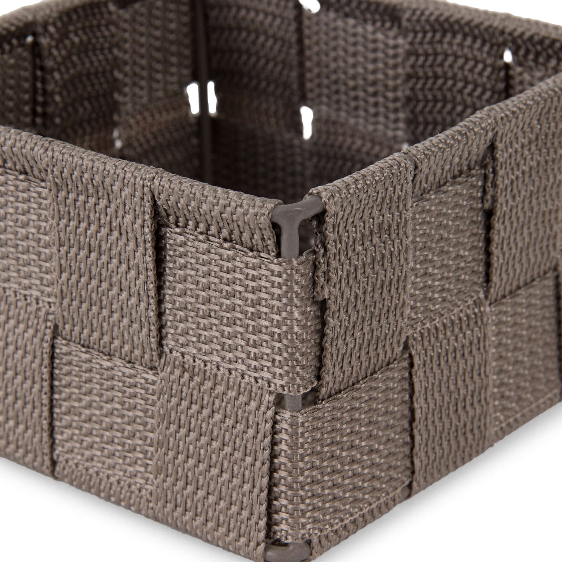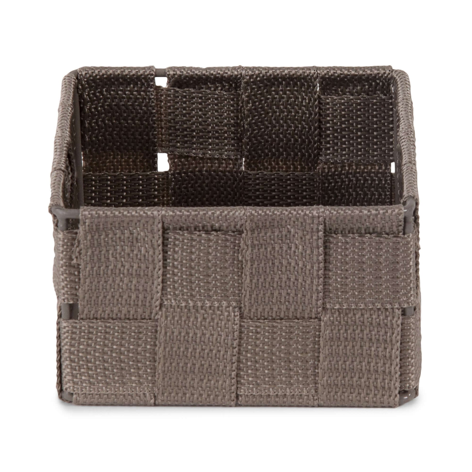 Un tout petit prix pour organiser joliment ses rangements ! Ce mini panier couleur taupe permet de compartimenter les tiroirs pour retrouver ce que l'on cherche au premier coup d'oeil. Vous pourrez aussi l'utiliser comme vide-poches dans l'entrée, la chambre ou la salle de bain. Réalisé en sangles tressées, il est renforcé par une armature métallique. N'hésitez pas à l'associer à tous les paniers Stan coloris taupe pour agencer des rangements harmonieux. Dimensions 12 X 12 X H.7 cm.